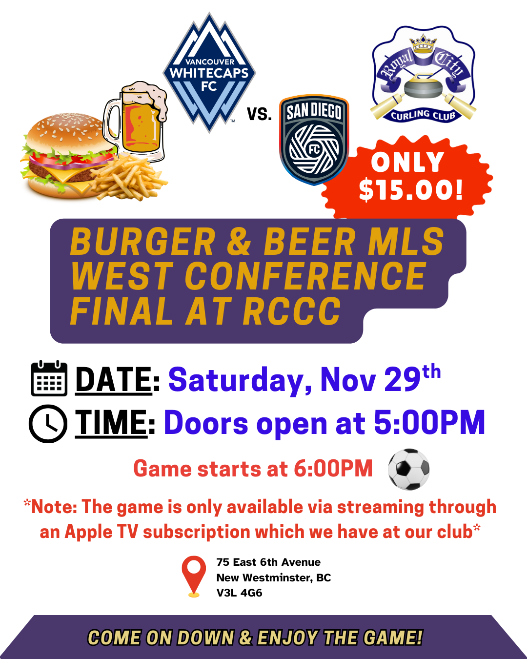 BURGER & BEER – WATCH THE WHITECAPS IN THE WEST CONFERENCE FINAL