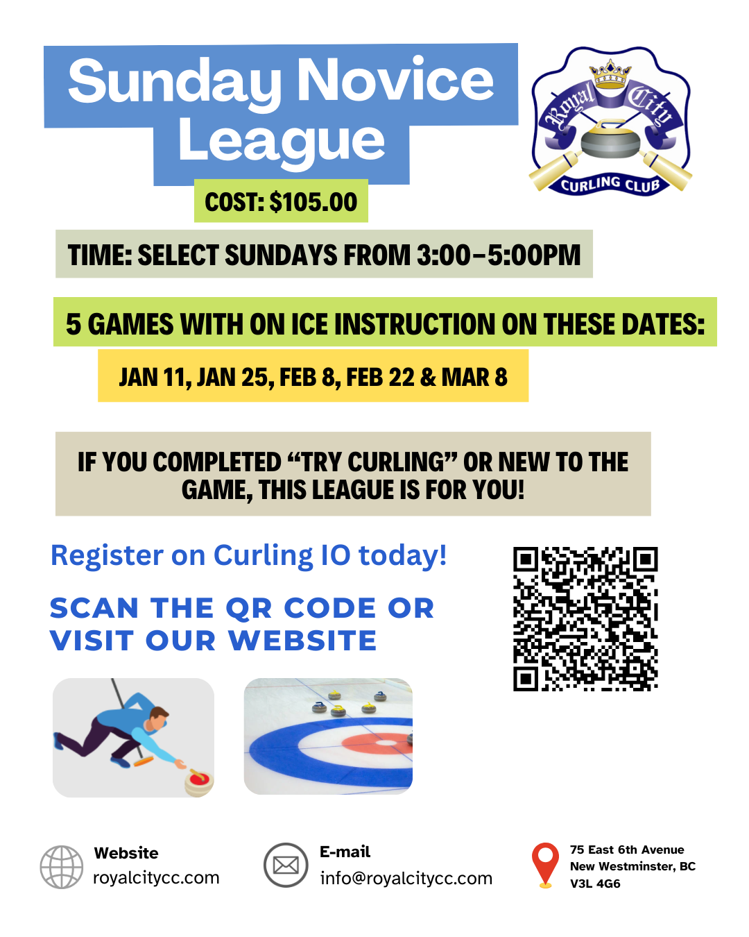 OPTION 2 OF THE SUNDAY NOVICE LEAGUE IS COMING SOON! PERFECT FOR NEW CURLERS!